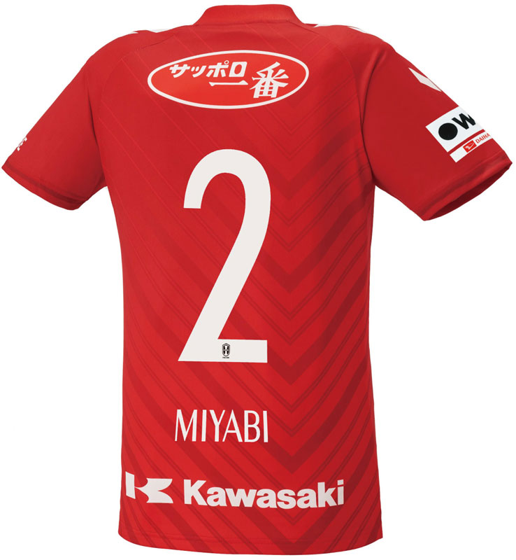 シャツ全体にhummelの象徴であるシュエブロンラインをデザイン。神戸のポートタワーをイメージした左胸のエンブレム下部にシェブロンラインが重なるアシンメトリーザインで、クラブが未来に躍進する方向を指す力強さを演出する。