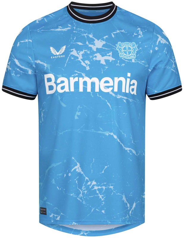 23-24新サードユニフォームは、レヴァークーゼンでは珍しいスカイブルーを基調色い採用。前回この系統の色の登場は、2005-06シーズンのアウェイユニフォームまでさかのぼる。