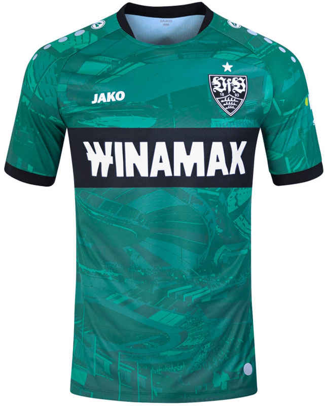 23-24新サードユニフォームは、シャツ全体をグリーンで彩るシュトゥットガルトでは珍しいタイプのデザインが登場。アウェイの「故郷の地域」に対し、サードは「もう一つの故郷」ホームスタジアムをデザインする。