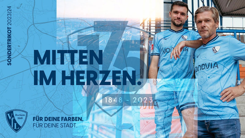 そんな175周年記念モデルのデザインにはホームタウンの地図を描き、地域とのつながりを強調。シャツ前面のハートマークは、1911年に開場し112年の歴史を誇るホームスタジアム「ルーアシュタディオン」の位置を示している。