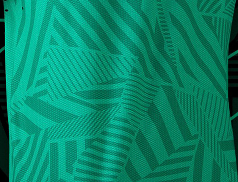 23-24新アウェイユニフォームはグリーンを基調に、前面に幾何学的なダズル迷彩パターンを採用。ニューカッスルでは珍しいタイプのデザインが登場した。