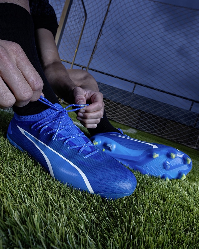 三笘薫らの着用する『ウルトラ アルティメット』は、ウルトラブルー/プーマホワイト/プログリーン。