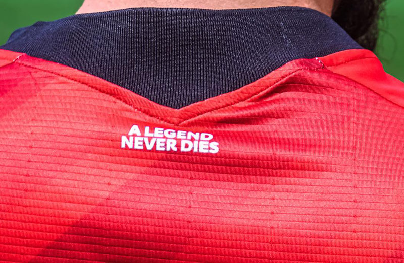 背面首元にはクラブのモットー“A LEGEND NEVER DIES”をレタリング。この言葉には歴代レジェンド選手への敬意と、2002年に破産で一度消滅したクラブが「二度と消滅しない」という誓いを込めている。