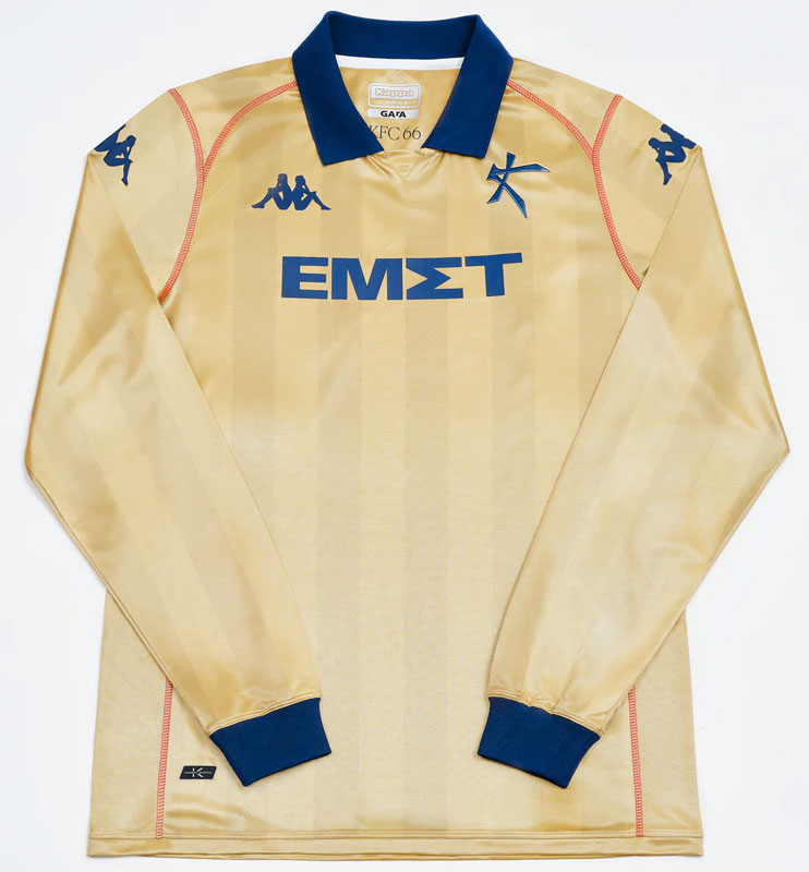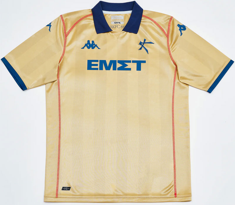 今季の3つのユニフォームの胸には、少々風変わりな「ΕΜΣΤ」の4文字をプリントする。これはスポンサーである「アテネ国立現代美術館」のワードマーク(文字のみの企業ロゴマーク)。