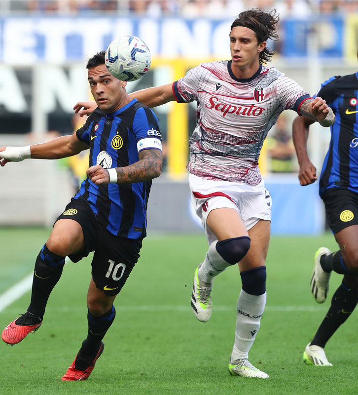 そのサードユニフォームは7日に敵地で行われたセリエA第8節インテル戦でデビュー。試合は2-2の引分けで終了した。ホームチームのキットカラーとの兼ね合いで、ボローニャはホワイトのパンツとソックスを着用している。