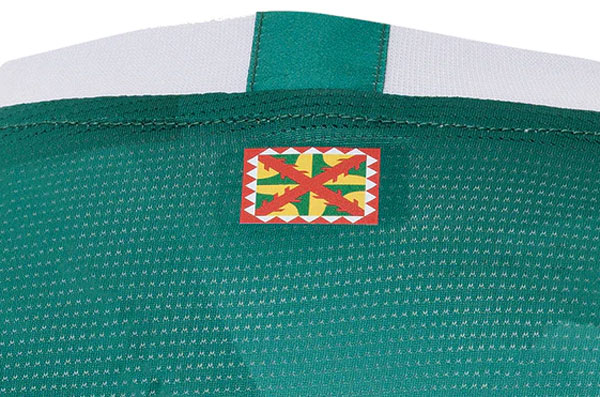 背面の首元にはウエスカ県の旗をプリント。アウェイユニフォームの“白地に赤い十字”のデザインは、この旗をモチーフとしている。