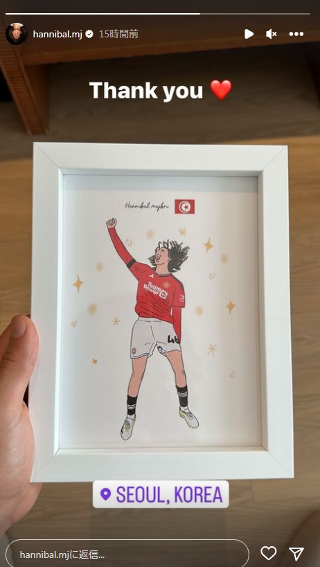 「Thank you」と感謝のメッセージを綴っていたが、ソウルで自身を描いた絵を贈られていたようだ。
