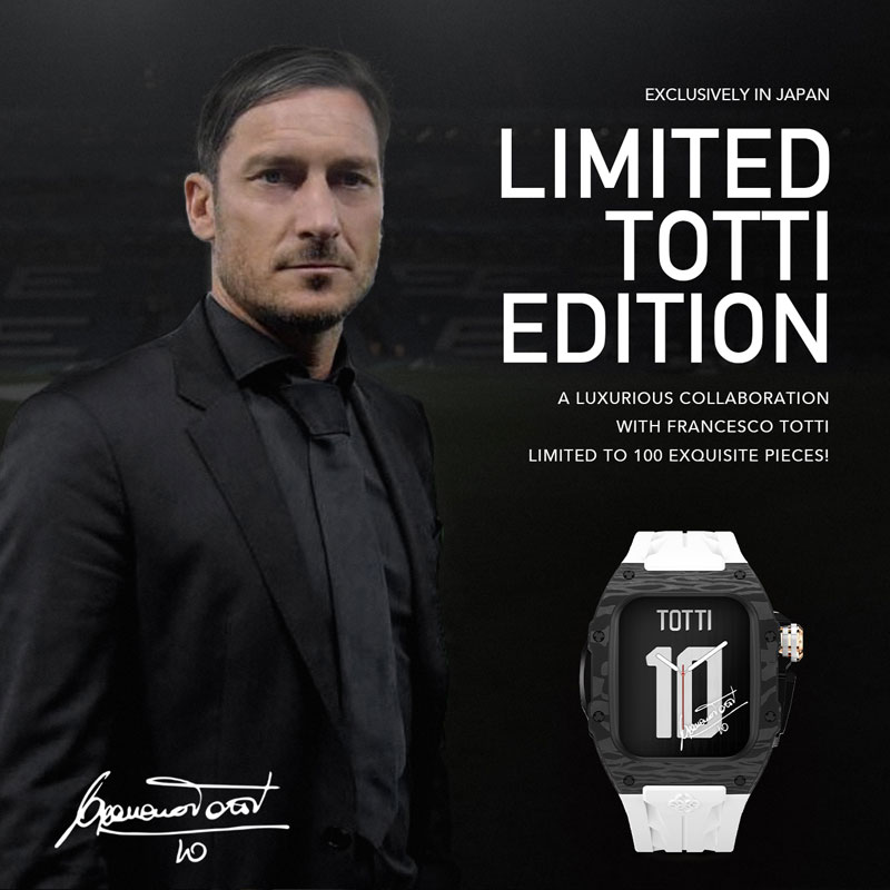 また、トッティ氏とのコラボレーションモデルとなるアップルウォッチケース「LIMITED TOTTI EDITION」も発売。今回の来日中に行われるトッティ氏とのスペシャルイベントに参加できる購入特典が付く。