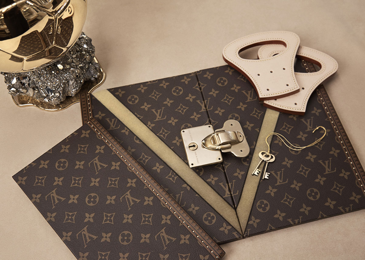 トランクの外装には、ルイ・ヴィトンを象徴するクラシックなロジンのトリミング や、160年以上にわたりルイ・ヴィトンのトランクに使用されてきたものと同じ真鍮(しんちゅう)製のコーナープロテクター、ロック、クラスプが使用されている。
