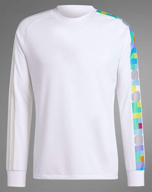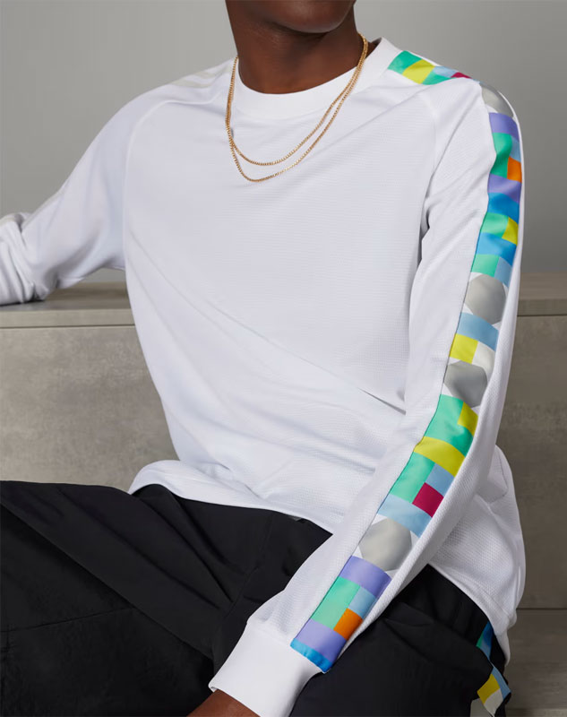 ホワイトを基調に、左袖のカラーチャートが鮮烈な長袖ジャージ。一見するとマンチェスター・ユナイテッドのアイテムとは分からない点が面白い。