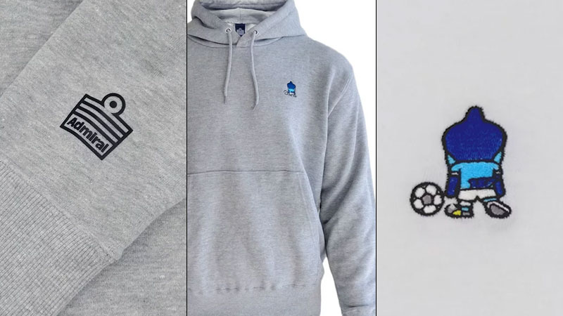 今回は長袖Tシャツとパーカーが発売。どちらもユニフォームサプライヤーのAdmiral製で、胸にはジュビロくんの可愛らしい後ろ姿の刺繡し、袖にワンポイントでAdmiralのロゴマークをデザインしている。