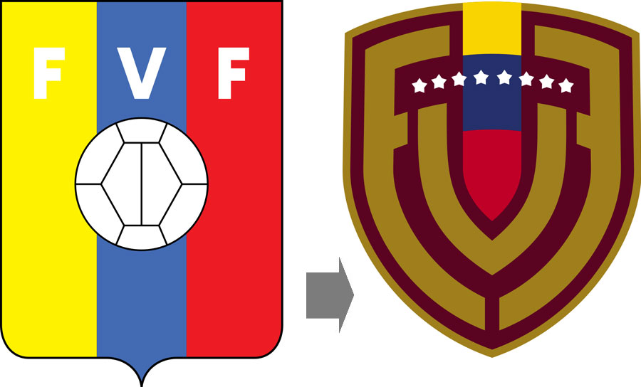 新エンブレムのベースカラーはユニフォームのホームと同じでワインレッドとゴールド。そこにサッカー連盟名“Federación Venezolana de Fútbol”の頭文字であるFVFを組み合せる。以前の国旗カラーは一部分だけ残した形だ。これまでの国旗3色とは全く違う印象だが、ホームユニフォームの色とは絶妙にマッチする。