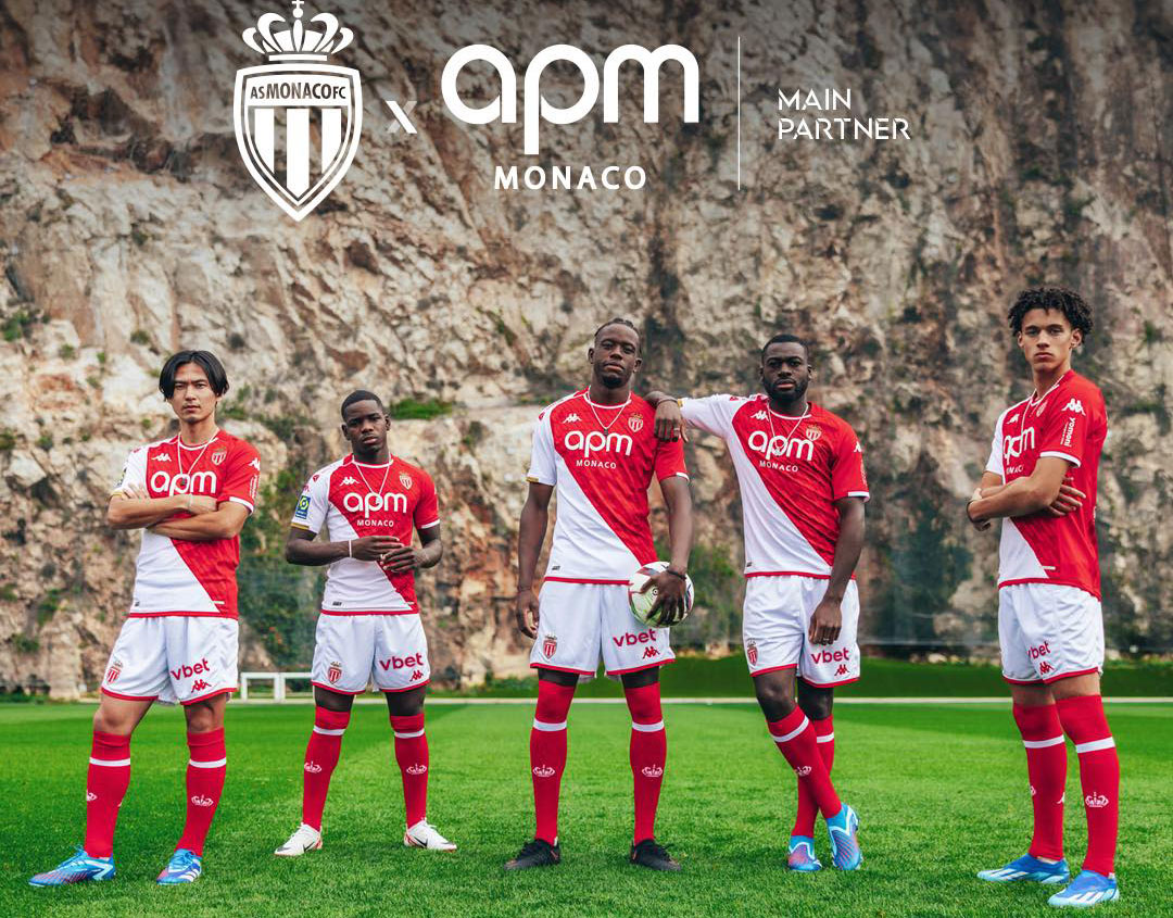 「Apm MONACO」と今季のユニフォーム。両者は「優雅」というキーワードで共通点があり、実際にロゴを付けたユニフォームも良い雰囲気だ。