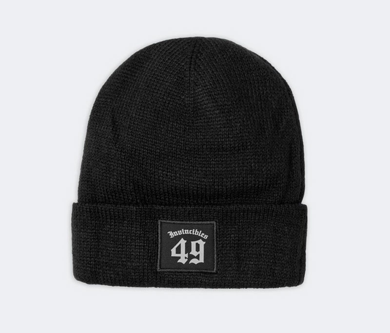 前面にインヴィンシブルズロゴ、背面にエンブレムをデザインしたニットキャップ。素材はアクリル100%。