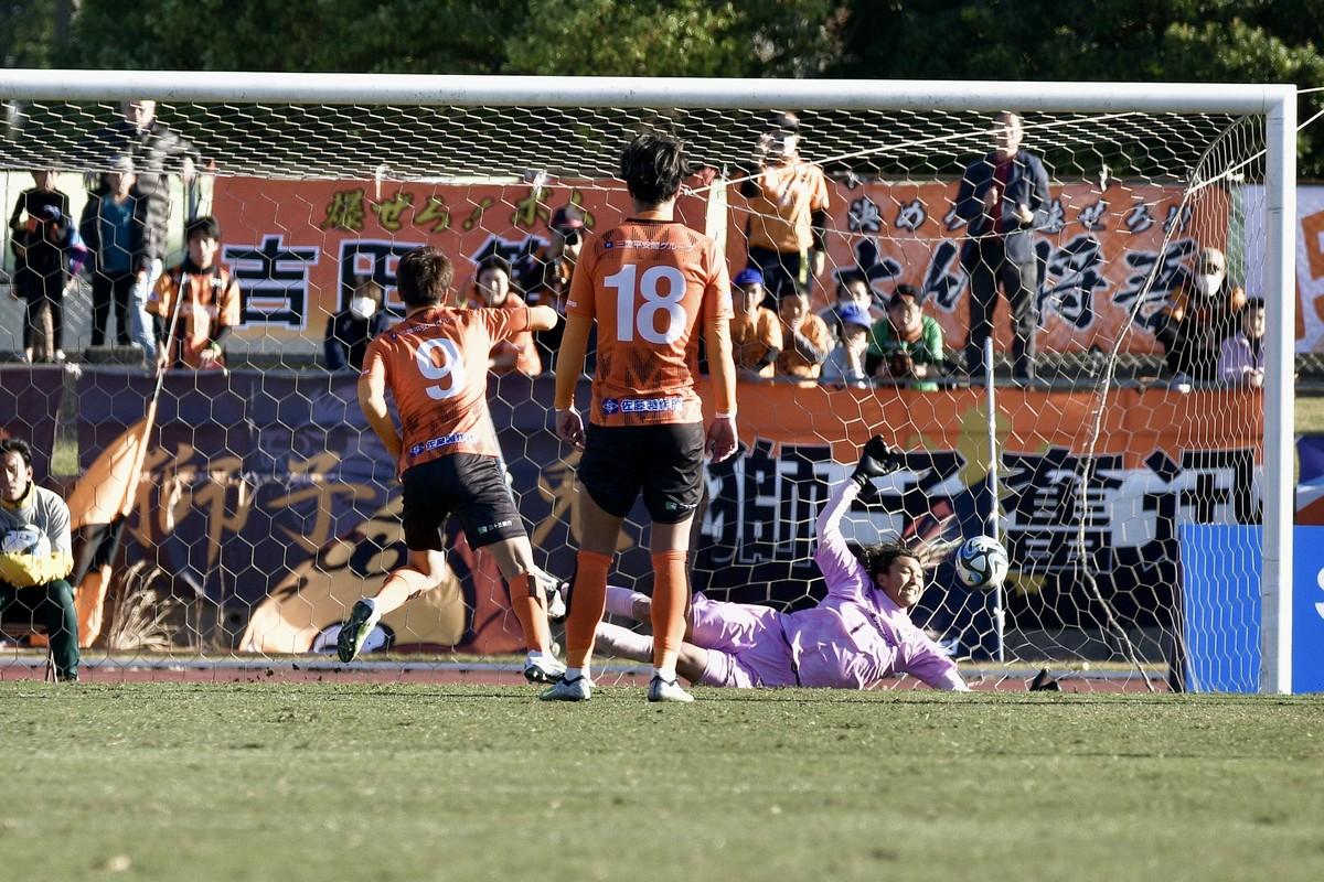 さらにその10分後にはレイラック滋賀FCが追加点。海口彦太のシュートをGK森健太が弾いたところを、角田駿が角度のないところから押し込む。これがネットを揺らし、さらに差が広がった。
