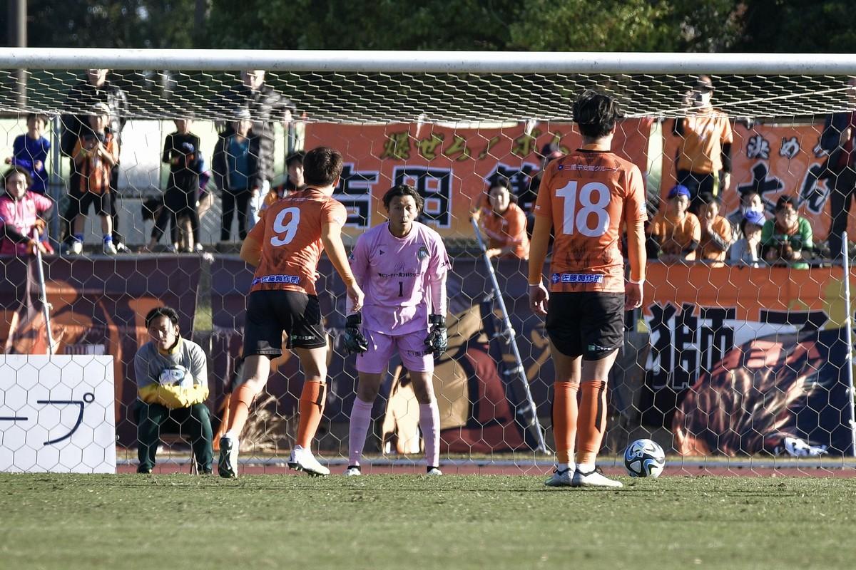 そして後半、意地を見せたいヴィアティン三重は、勝利が義務付けられたレイラック滋賀FCと互角の戦いに持ち込み、85分にPKを獲得。これを大竹将吾が決め、終盤に入ったところで2-2と同点に追いつくことに成功した。