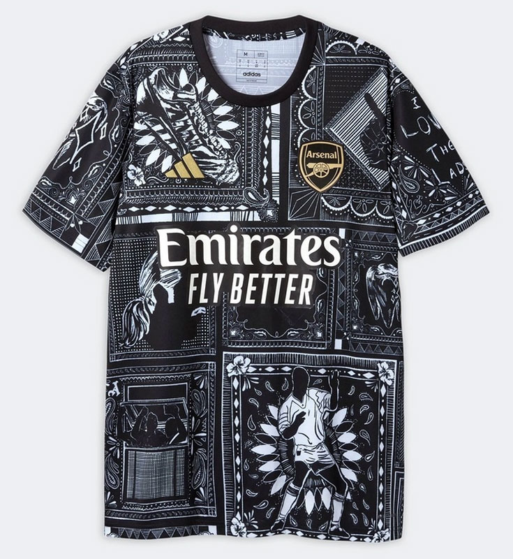 ライトのアーセナルでのキャリアにインスパイアされたグラフィカルなプレマッチジャージ。