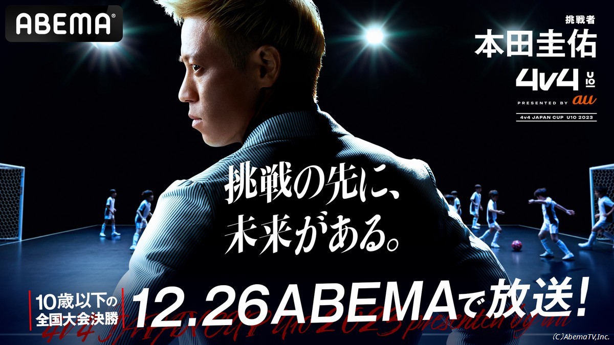 かつて日本代表選手として活躍した本田圭佑氏が考案した新たなトーナメント「4v4 JAPAN CUP U10 2023 presented by au」の決勝大会が、なんと『ABEMA』で生中継されることになったという。