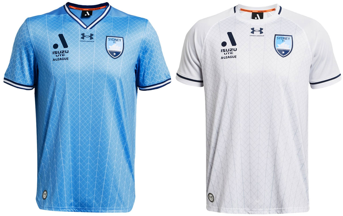 この2つのユニフォームは23-24シーズンのホーム(左)とアウェイ。扇状の極細ストライプに薄っすらと幾何学的な模様を落とし込むが、これはシドニー港周辺の名所シドニー・オペラハウスをモチーフとしたもの。