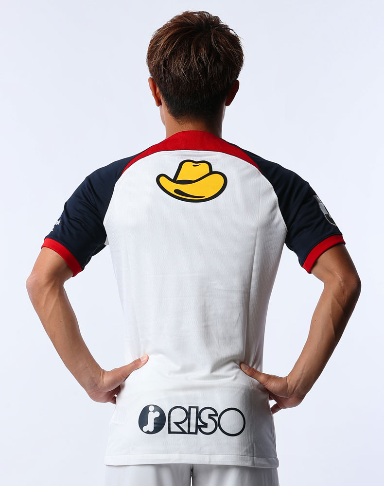 画像で確認できる各部スポンサー企業は、胸に「LIXIL」、左右鎖骨に「mercali」、背中上に「Yellow Hat」、背中下に「RISO」、左袖に「日本製鉄」、パンツ前面に「Kaneka」。