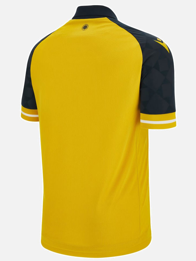 月桂樹の葉で飾るエンブレムと背面に配したセンテナリーロゴマーク。これらは2023モデルのホーム・アウェイ各ユニフォームと共通するが、サードは100周年記念モデルという位置付けのため特別感をより強く感じる。