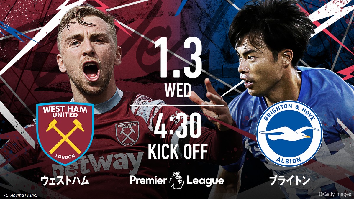 「ウェストハムvsブライトン」/キックオフ時間:1月3日(水)午前4時30分~(ABEMAプレミアム)