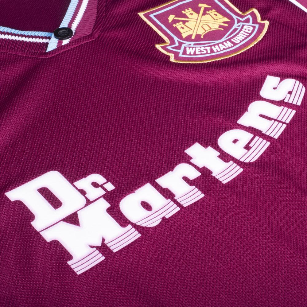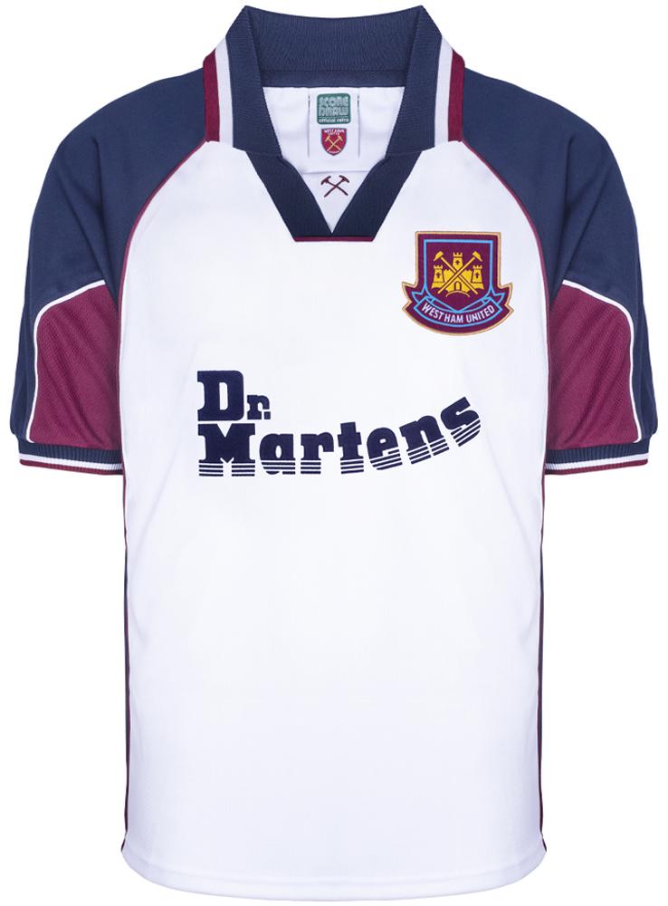 「Dr. Martens」とウェストハムは1998-99から2002-03の5シーズンでパートナーシップを結んでいた。このロゴ入りユニフォームは現在でも人気が高い。