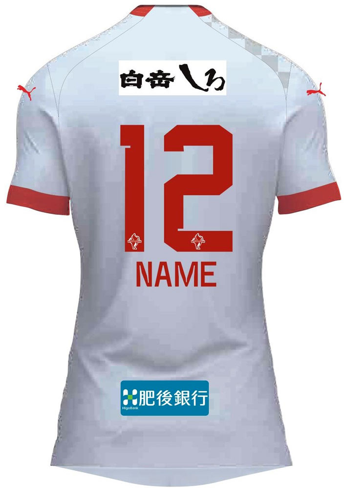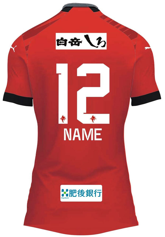 現時点での各部スポンサーは、胸に「Hirata(平田機工)」、鎖骨左に「RKKCS」、鎖骨右に「アウトソーシングテクノロジー」、背中上に「白岳しろ」、背中下に「肥後銀行」。