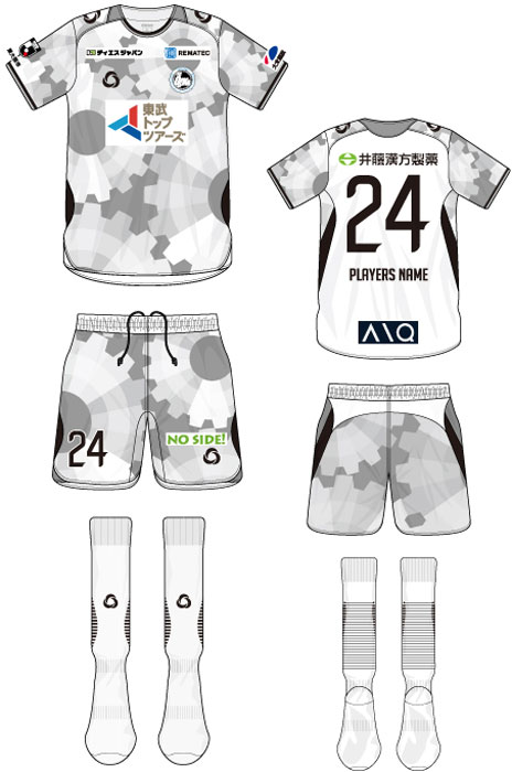 新アウェイユニフォームはホワイトとグレーの2色による歯車デザインに。背中のネームナンバーは2024シーズンよりboneraのオリジナルフォントを使用する。