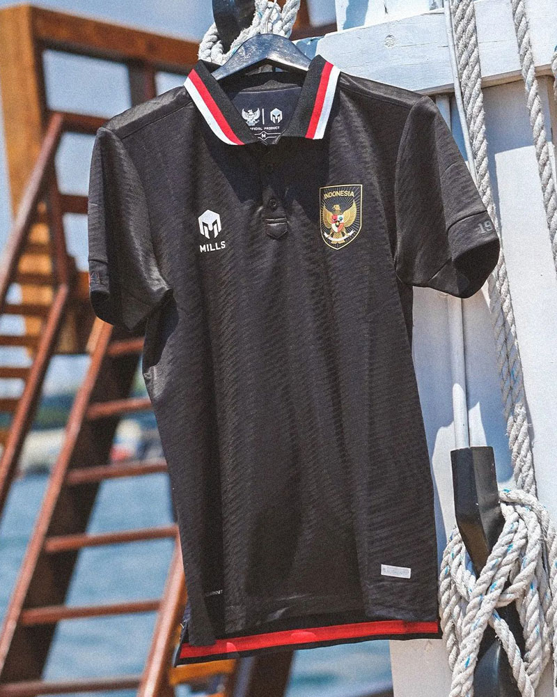 2022サードユニフォームは引き続きブラックを基調としたデザイン。フィールドプレーヤー用としてブラックのユニフォームが初めて登場したのは2020年で、この2022モデルがインドネシア史上2番目の“黒ユニ”となる。