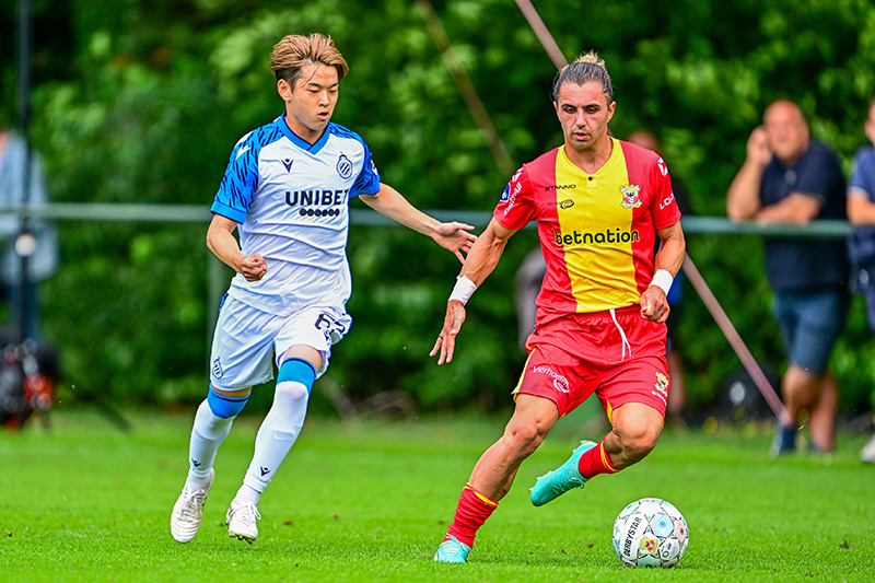 2022年の夏にクルブ・ブルッヘと契約した本間至恩。小柄なドリブラーは、古巣であるアルビレックス新潟ファンの期待を一身に背負いベルギーへと乗り込んだ。