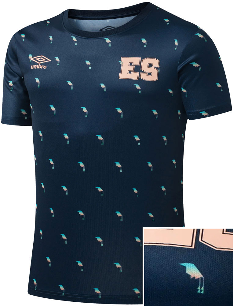 ユニフォームと同時に発表となったプレマッチ・ジャージも「アオマユハチクイモドキ」のエルサルバドル国鳥指定25周年記念モデルで、デザインはよりストレートに鳥の姿を色鮮やかに描く。