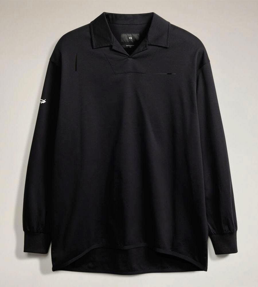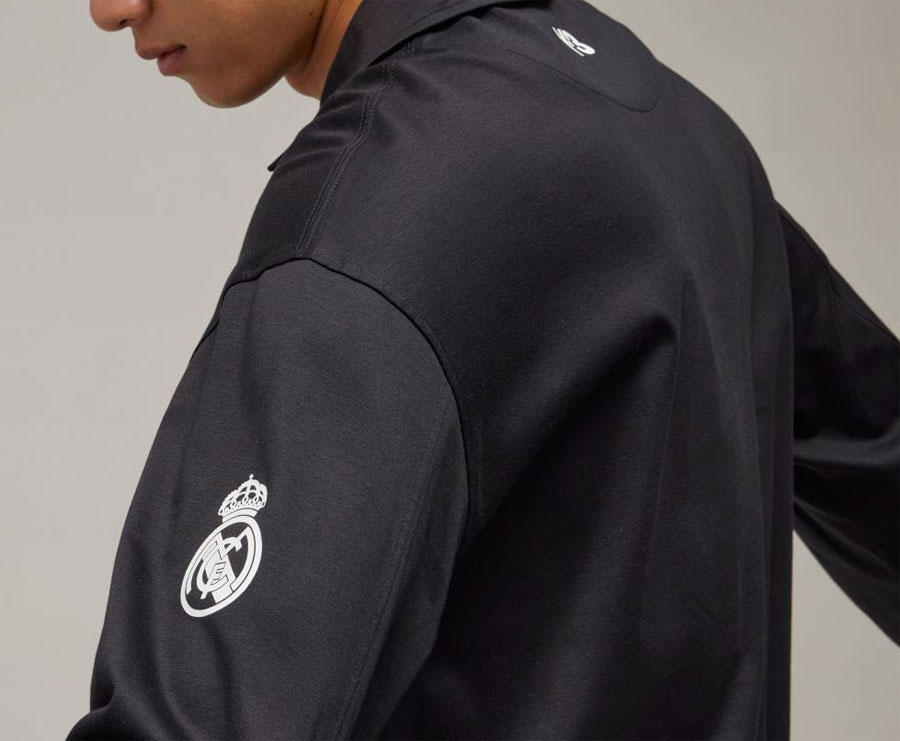 Y-3とレアル・マドリーのルーツである「エレガンス、偉大さ、伝統、ファッション」にインスパイアされた長袖ポロシャツ。右袖にレアルのエンブレム、左袖に山本氏の「Yohji Yamamoto」シグニチャーロゴをデザイン。