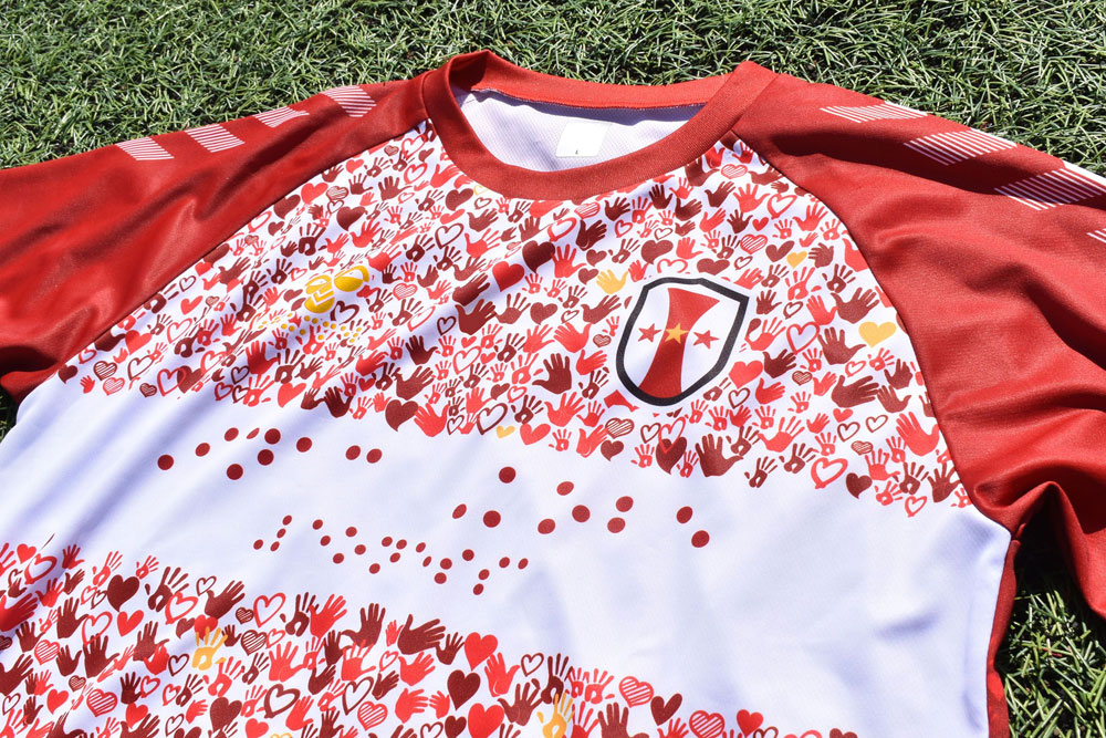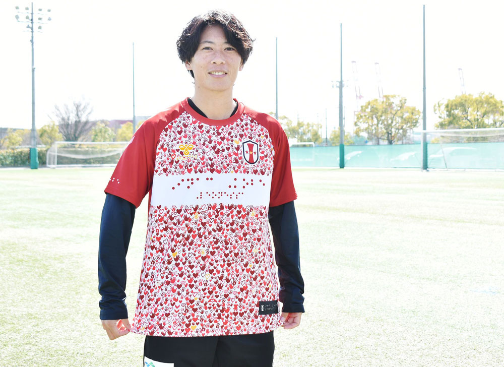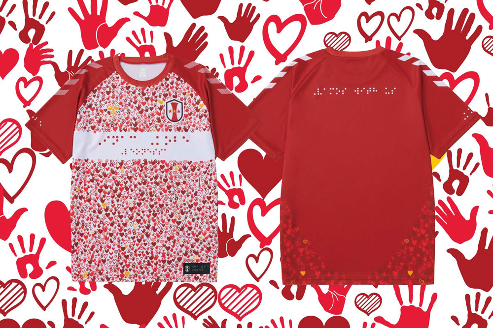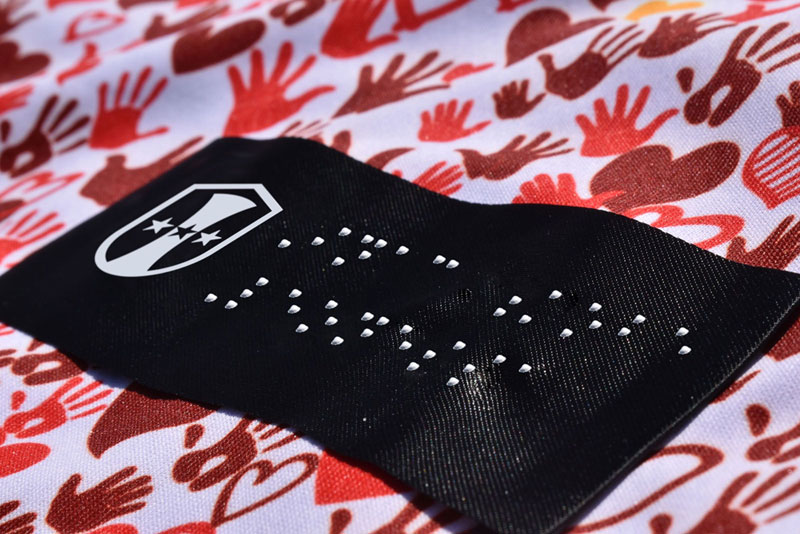 シャツの裾部にはクラブ名を点字加工で施し、浮き出た文字を指先で触って読み取れるようになっている。