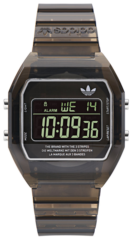 独特の雰囲気を持つ透明ボディは、腕に巻きやすい軽やかさも演出する。adidasのユニフォームやジャケットなどのトップスに合わせて使うのも面白そう!