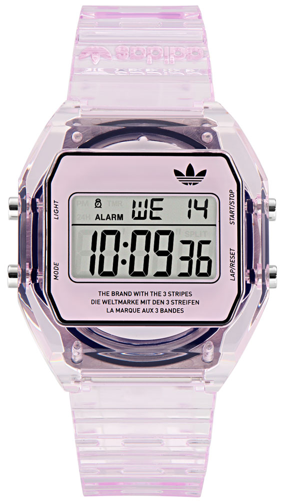 80’sレトロな時刻表示に目が行きがちだが、カレンダーやアラームなど便利な機能もしっかりと備えた本格派モデル。今年の新作は透過性のあるスケルトンボディを採用し、春夏らしい爽快でクリーンな印象が魅力だ。
