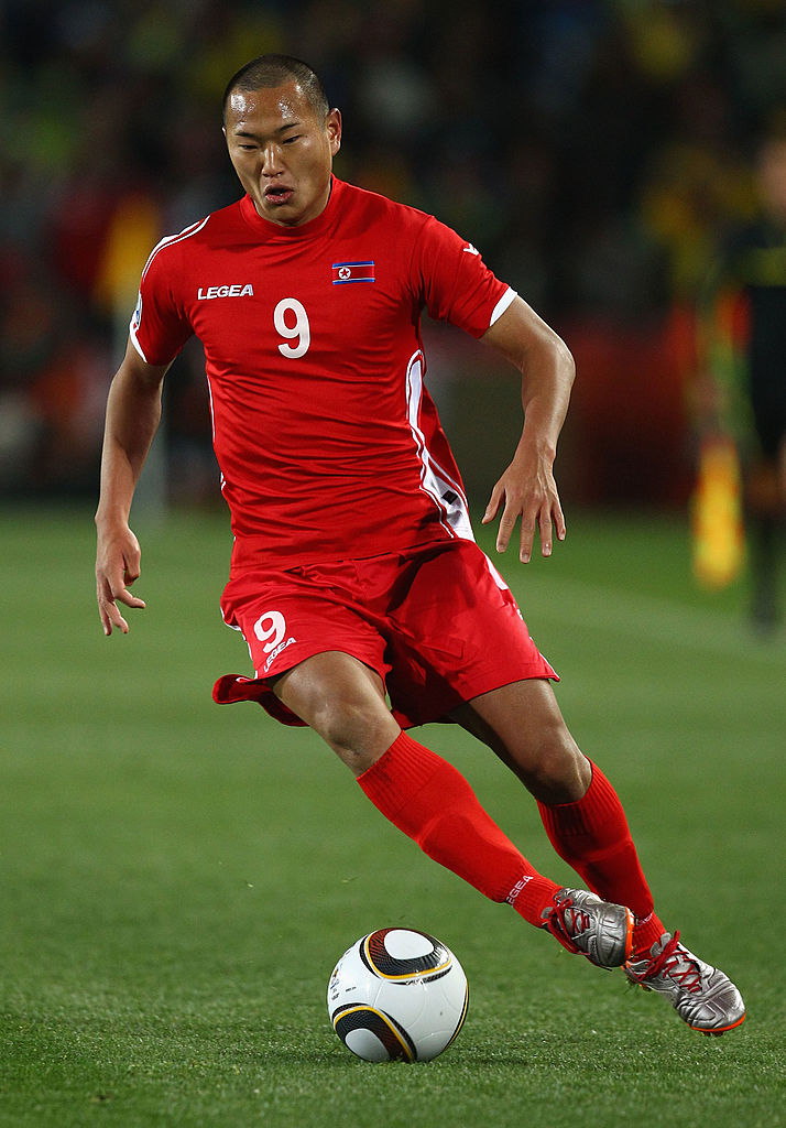 2010年に北朝鮮代表のエースとしてワールドカップに出場した際、国歌が流れるなかで号泣する姿を見せたチョン・テセ。川崎フロンターレで圧倒的なフィジカルを持つ重戦車ストライカーとして話題を集め、2007年に代表入りを果たした。