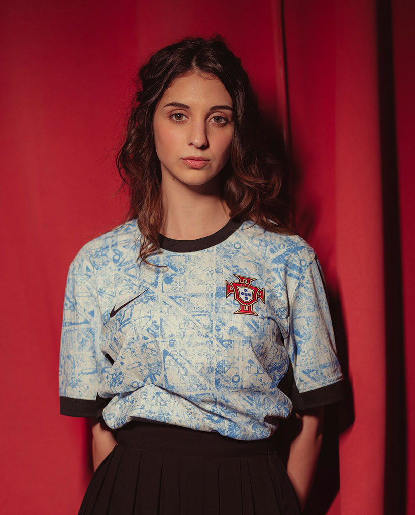 新アウェイユニフォームは、ポルトガルの伝統的な建築芸術に使われているタイルにインスピレーションを得た美しいデザイン。ホワイトとブルーをメインにネイビーを組み合せる。