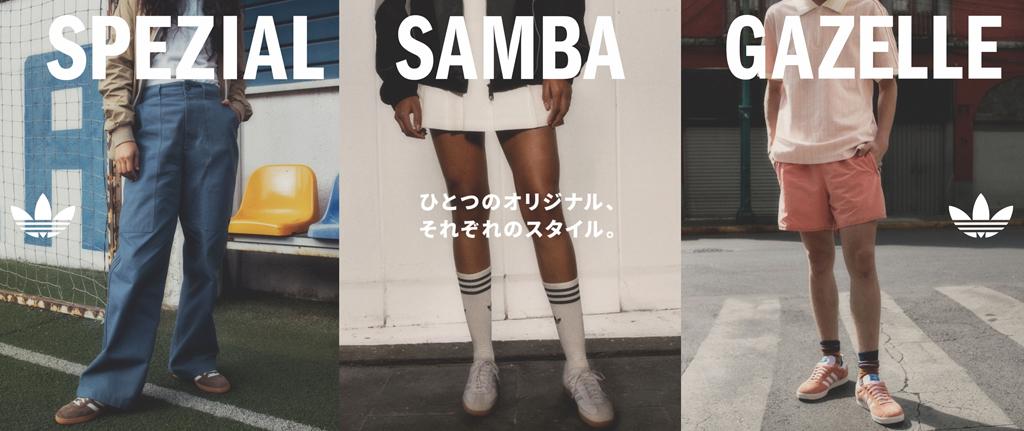 ひとつのスニーカーを1000通りに履きこなすスニーカースタイルを表現し、GAZELLE、SAMBA、SPEZIALを自分らしくコーディネートした、足元から始まる個性豊かな1000通りのスタイルとストーリーを映している。