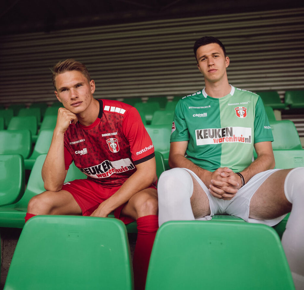 ちなみにドルトレヒトの今季のユニフォームはこちら。緑がホーム、赤がアウェイとなる。どちらもなかなか格好よい。