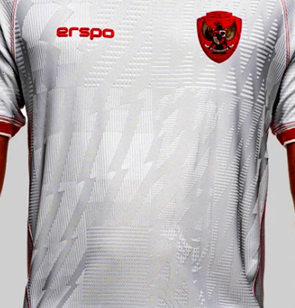 ホームは伝統のレッドを基調に、ホワイトを配したクルーネックと袖口のストライプが目を引く。サプライヤーが変わっても、これまで通りインドネシア国旗カラーをベースとしたデザインだ。