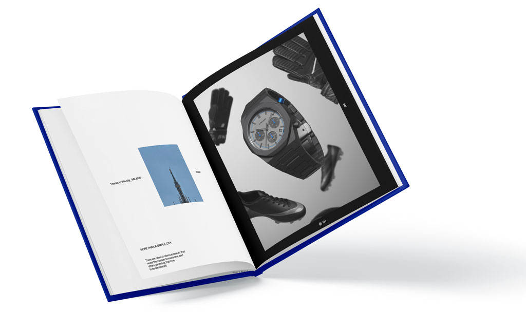 「コーヒーテーブル・ブック」には、インテルの歴史ある栄光の数々や、D1ミラノの先進的なブランド背景、さらには14人のミラノ出身アーティストによるコンセプチュアルな作品や物語が綴られている。