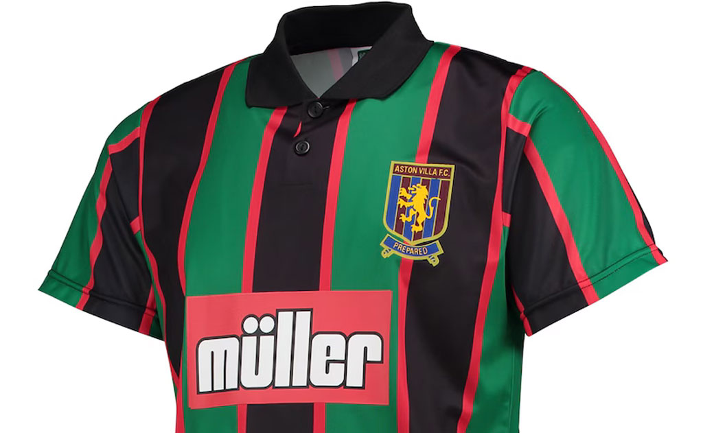少々奇抜なストライプは、ヴィラのユニフォームとしては非伝統的なデザイン。この斬新さを支持するファンと、ついていけないファンに二分したとも言われている。それでもこうして復刻版が作られるということは、ある種のカルト的な人気があるのだろう。