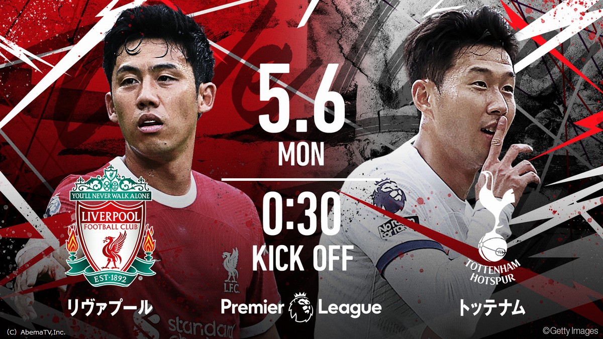 - 「リヴァプールvsトッテナム」/キックオフ時間:5月6日(月)午前0時30分~(ABEMAプレミアム)