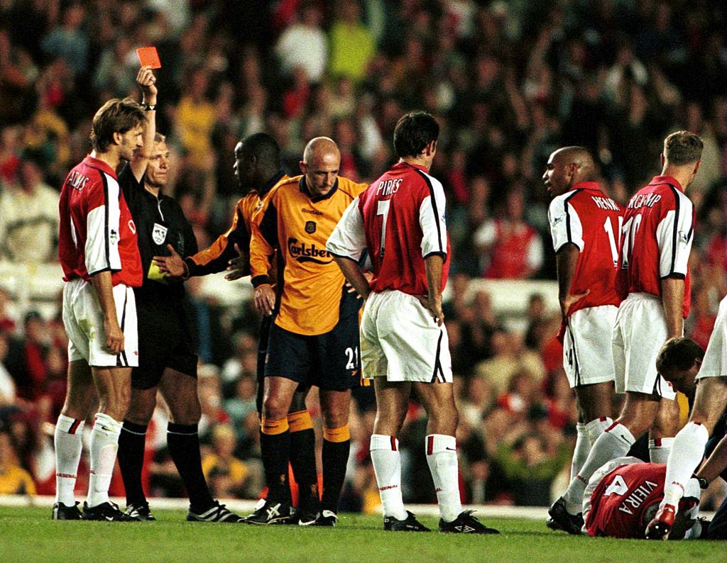 カントナから遅れること6年、アーセナルのスター選手であったパトリック・ヴィエラも同じように2試合連続で退場した。