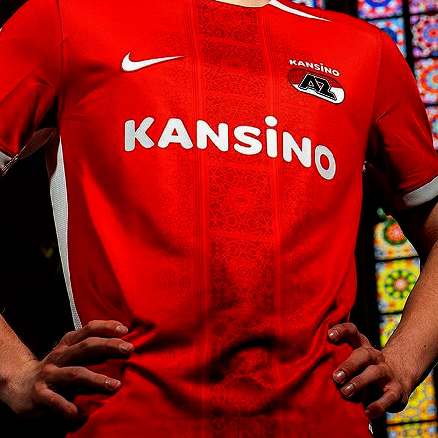 このユニフォームの特徴である、中心を垂直に走る印象的なグラフィック。これは地元アルクマールの教会「聖ローレンス教会」にある大窓の芸術的なステンドグラスをモチーフとしている。