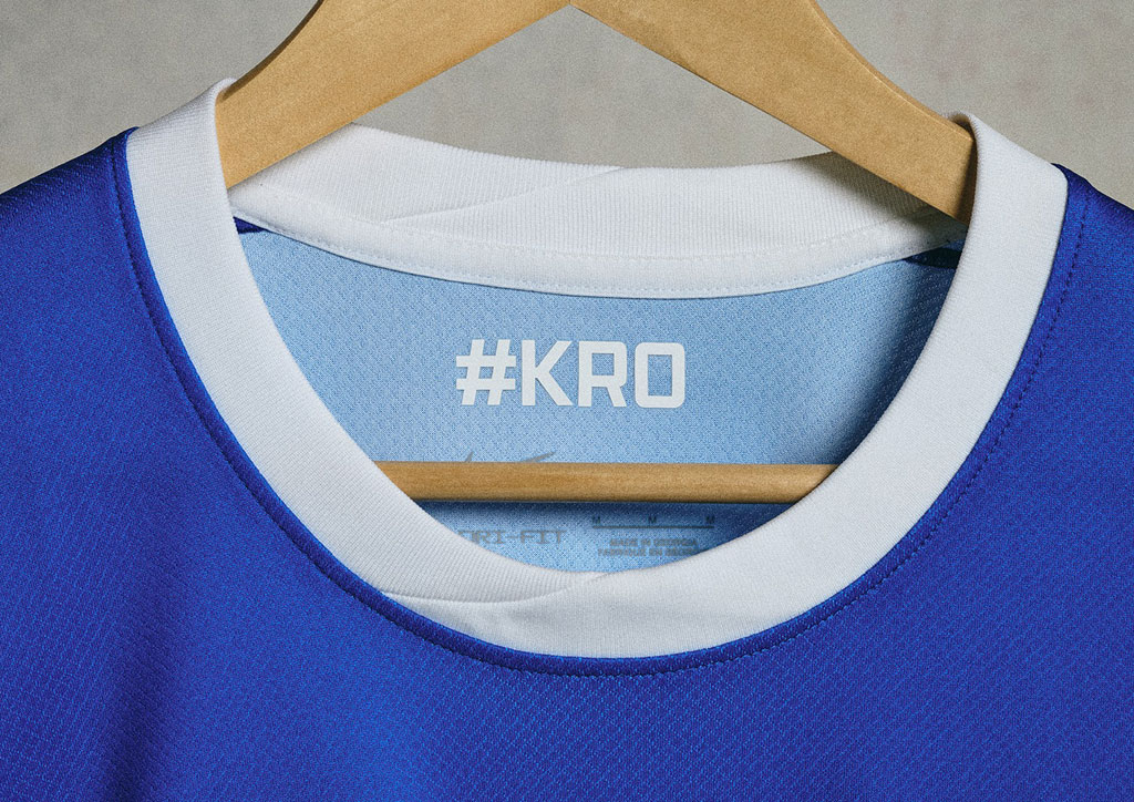 襟の内側には“#KRO”をレタリングする。KROとはサポーターのアンセム(応援ソング)「Keep Right On」の略で、サポーターはハッシュタグを付けたこの3文字をSNSで使用している。