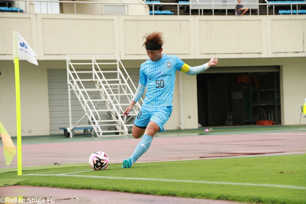 さらに前半終了間際には再び平尾壮のコーナーキックからロメロ・フランクがニアに飛び込み、右ポストに当てながらネットを揺らす。レイラック滋賀FCが前半のうちに2点のリードを奪い、そのまま2-0と勝利する結果となった。