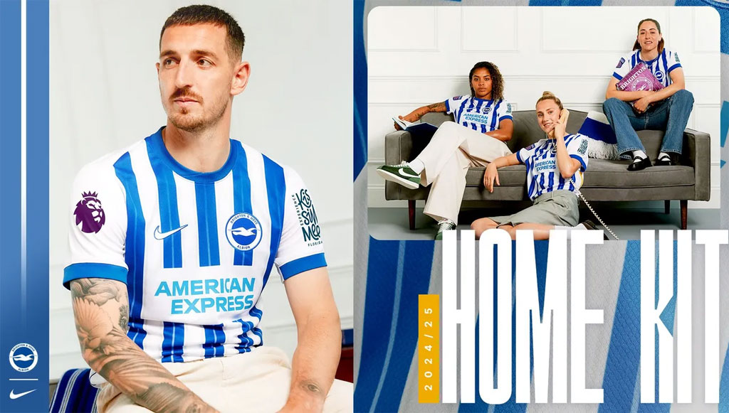今作もスタイリッシュと好評の新ホームユニフォームは、ブライトンのクラブ公式オンラインストアで販売を開始している。