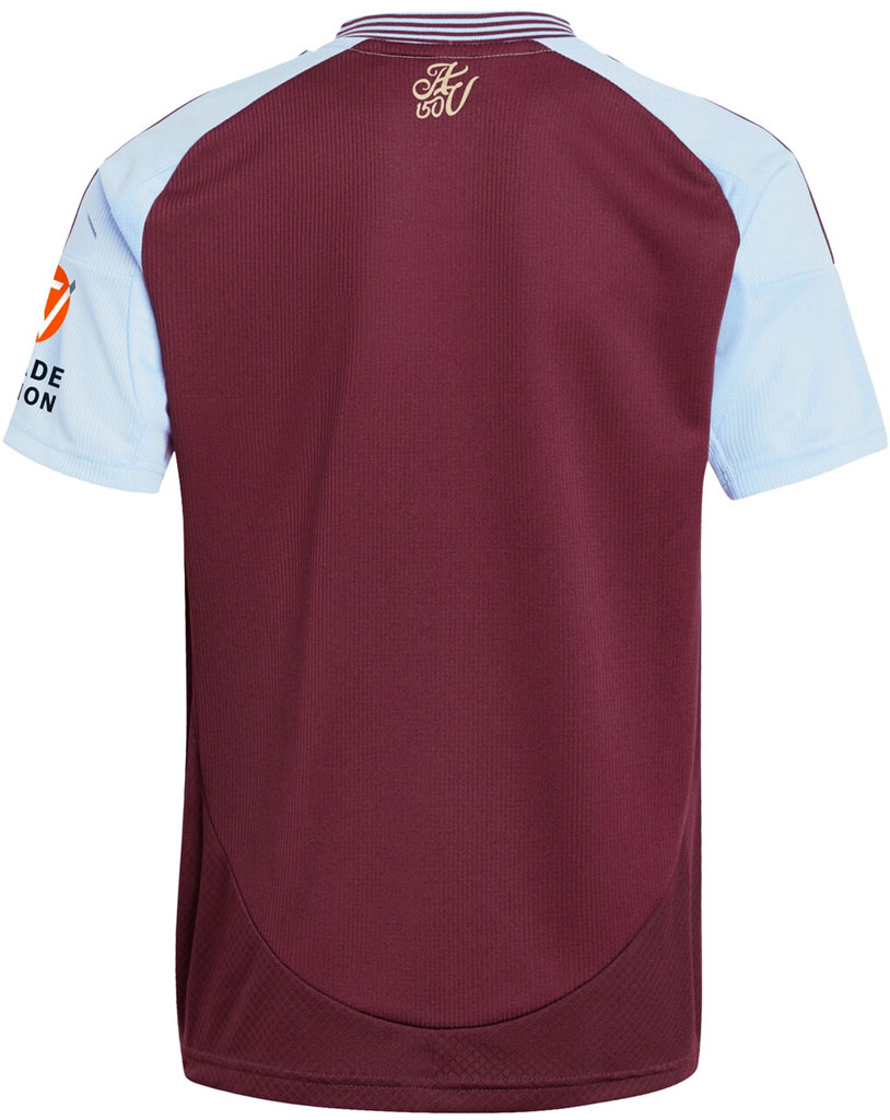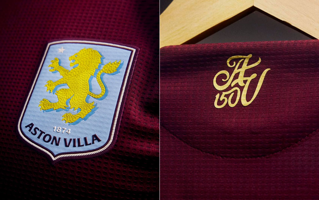 1874年11月に創設されたヴィラは2024-25シーズンで記念すべき150周年を迎えるが、節目のシーズンのユニフォームはエンブレムデザインを変更。昨季1シーズンのみ使用していた円形デザインから、それ以前の盾形へ戻した形となっている。ただし、ライオンの下に1874とクラブ名を入れるスタイルは新登場で、一応新作デザインということになる。